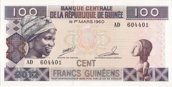 Gwinea 100 franków Kobieta Posąg 2012 P-35b
