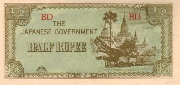 Mjanma (Birma) 1/2 rupii Świątynie 1942 P-13b